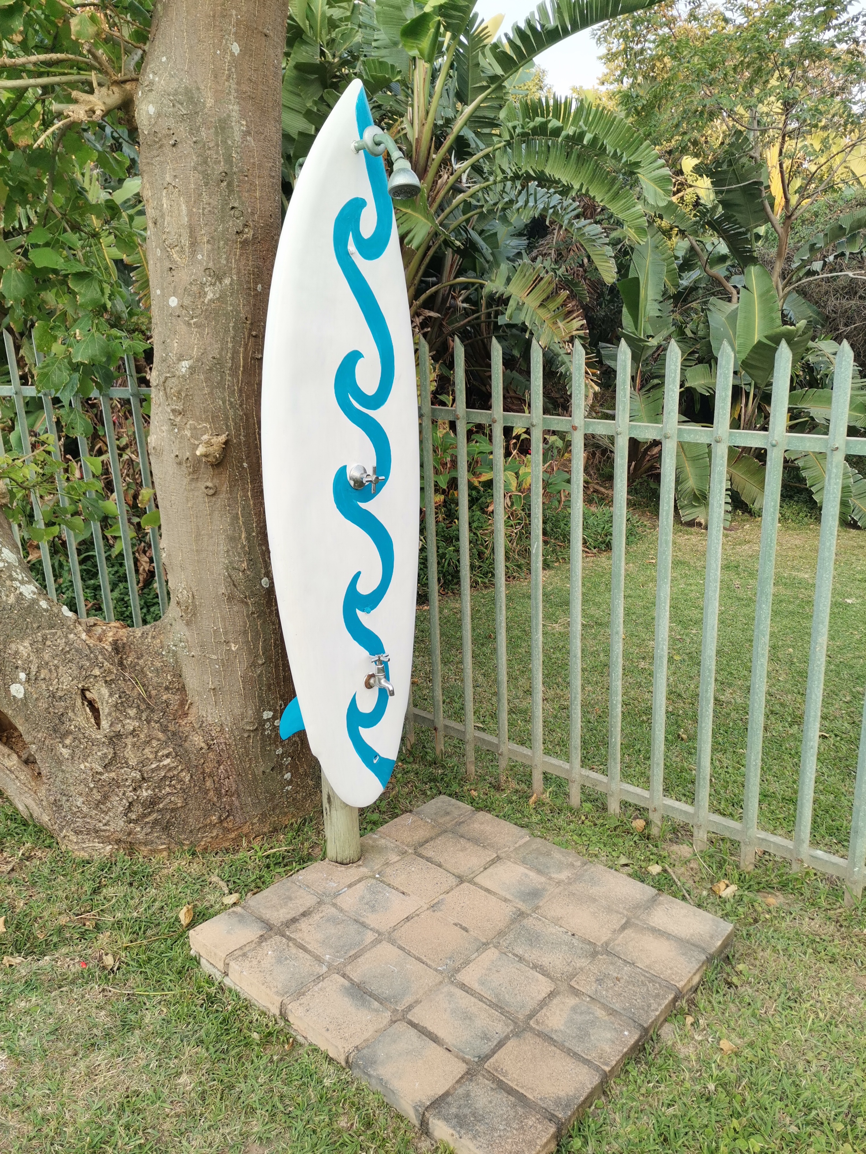 Our signature outdoor shower for you to enjoy pre or post beach, or pool, in fact, lets just say anytime you feel like it, is our unique Surfboard Shower.